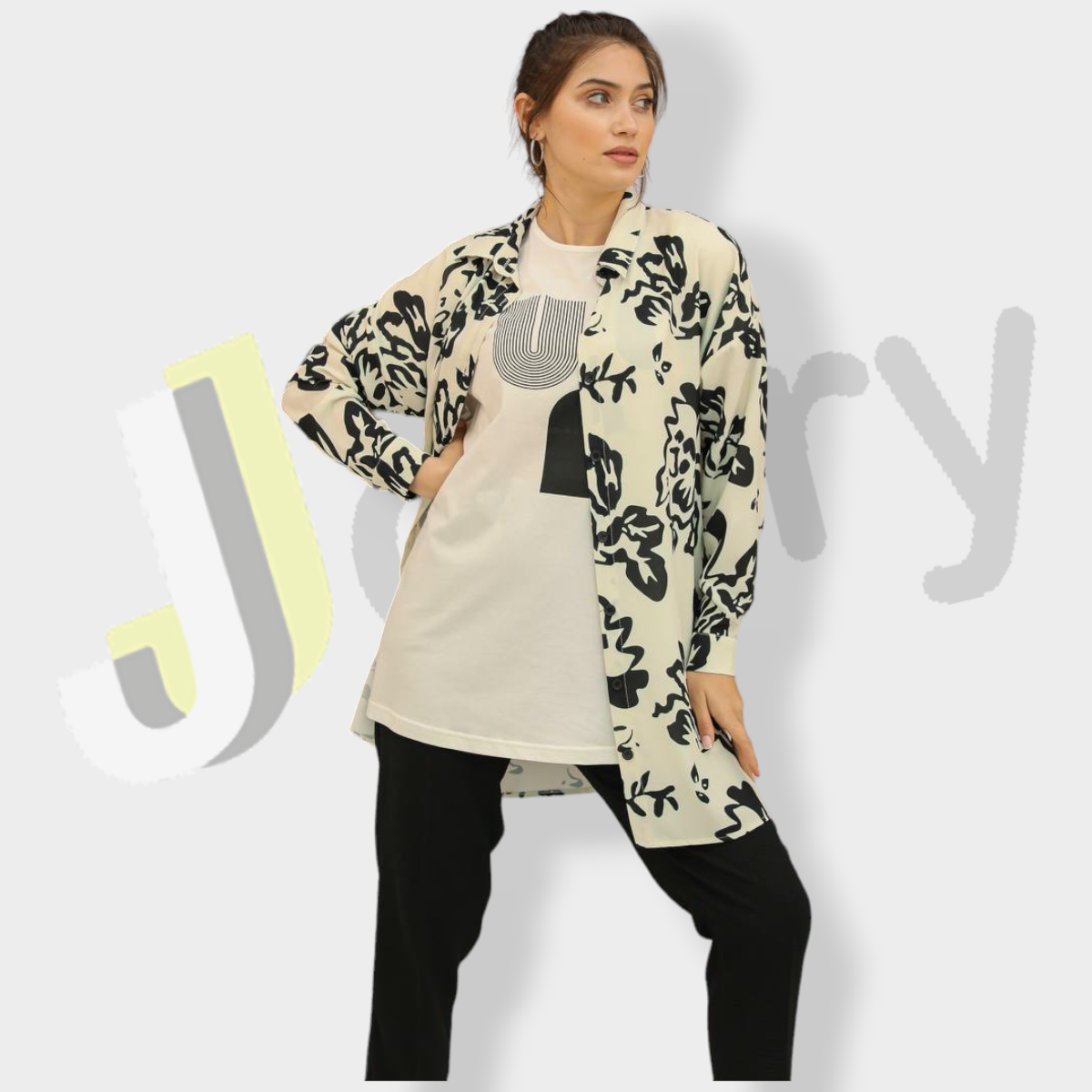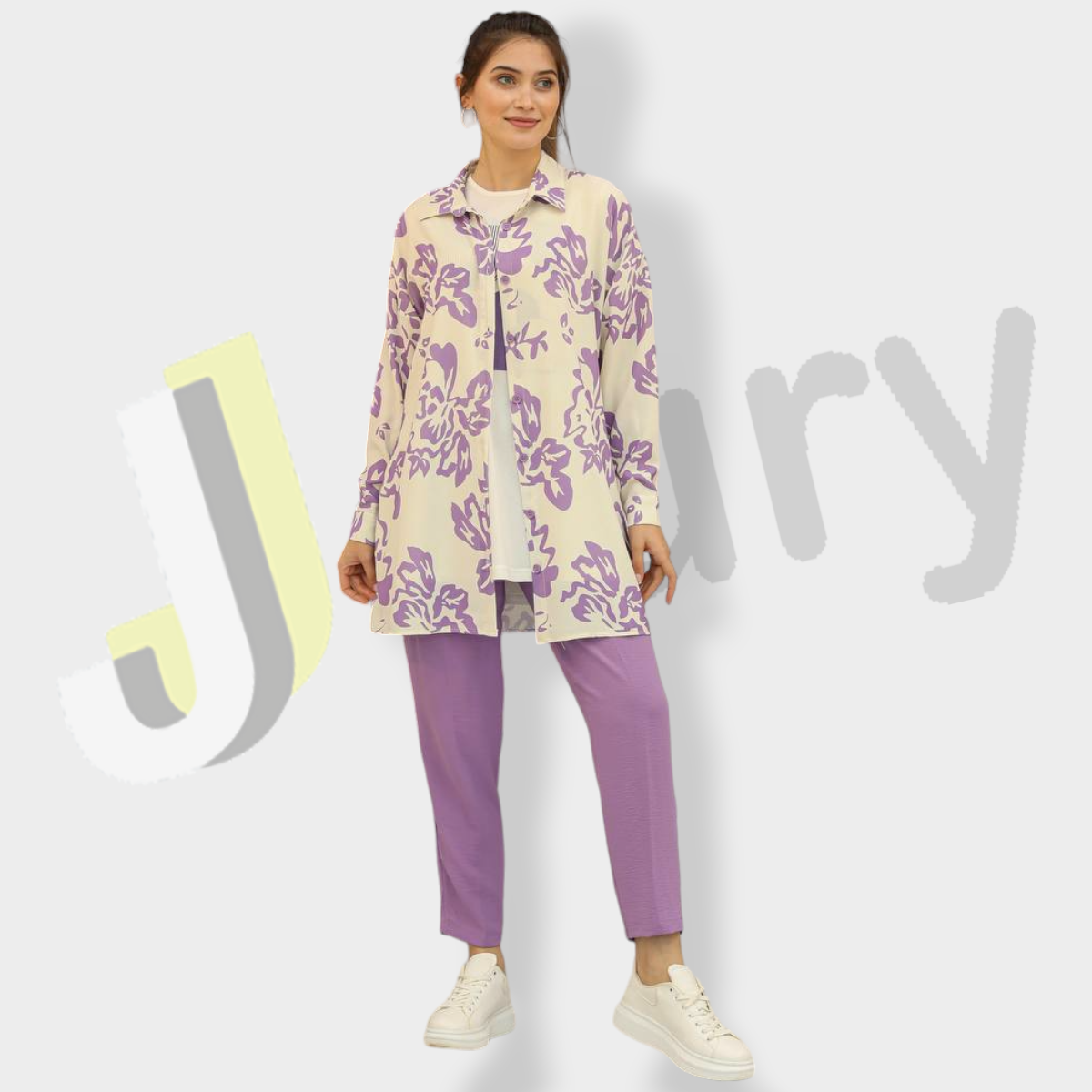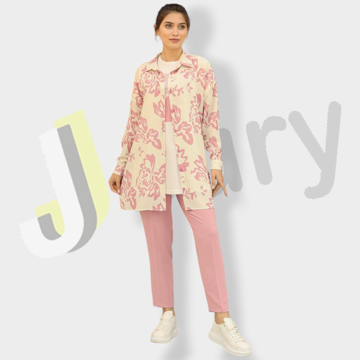 قميص (90 سم) مزين بطباعة زهور مع بلوزة بطباعة وبنطال سادة