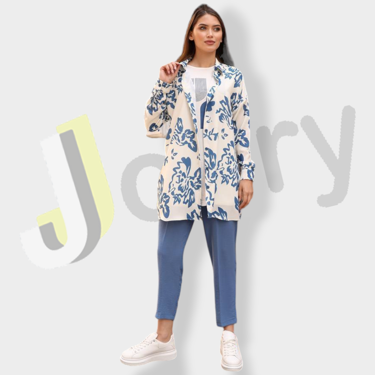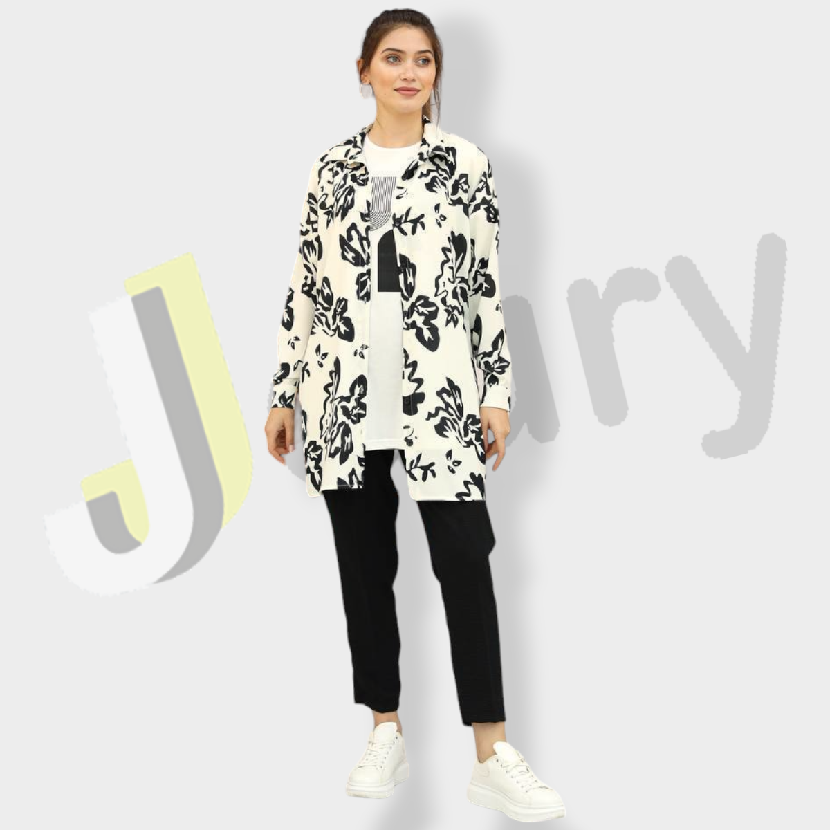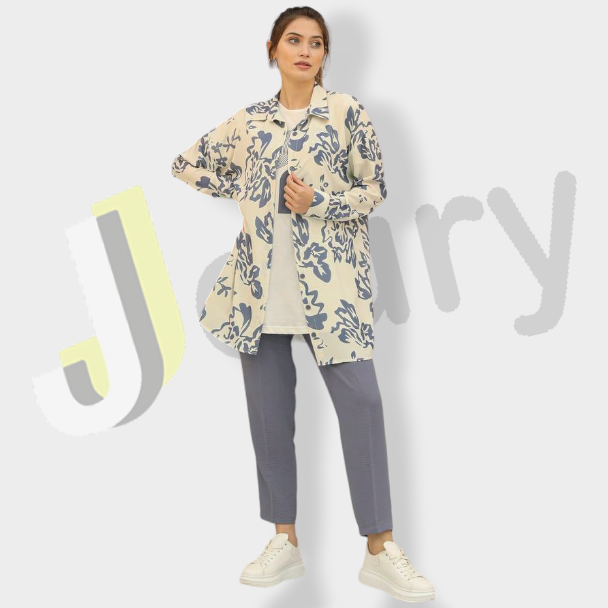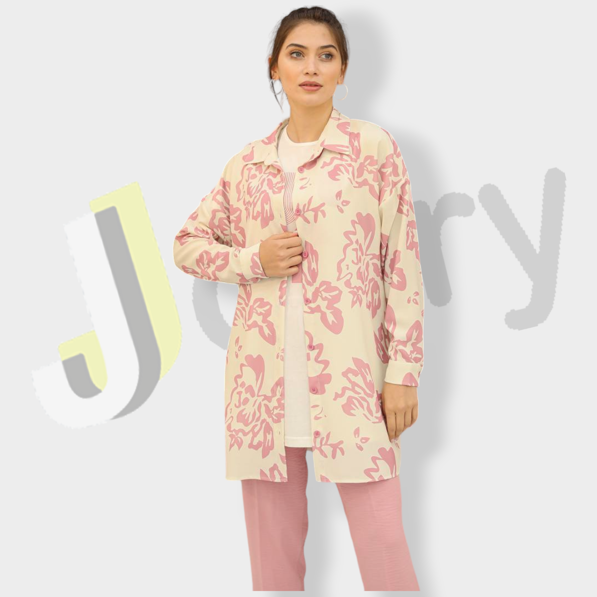 قميص (90 سم) مزين بطباعة زهور مع بلوزة بطباعة وبنطال سادة