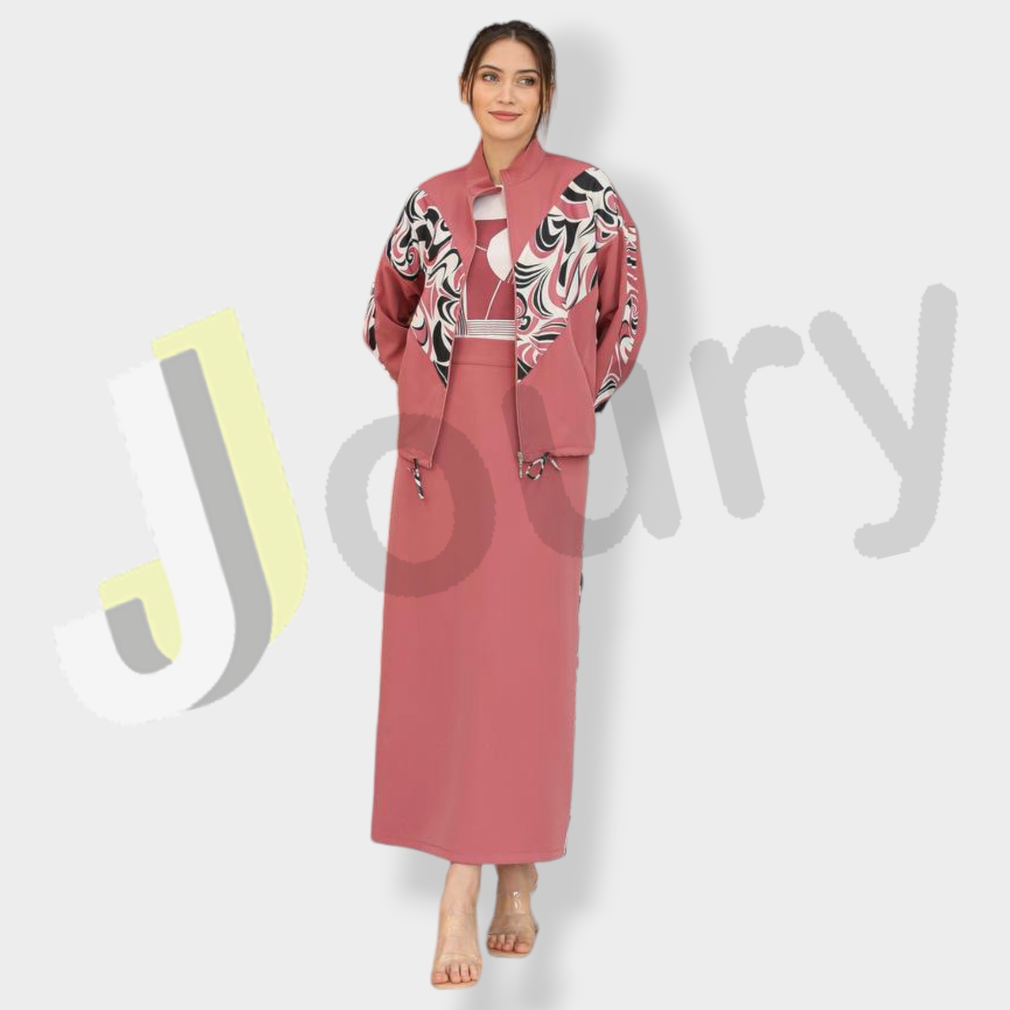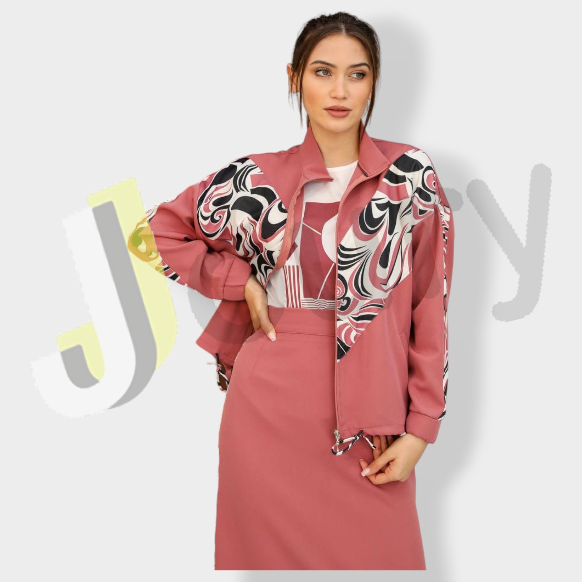 وسترة برباط مزينة بنقش من الامام وعلى الاكمام مع سحاب وجيوب من الجانبين