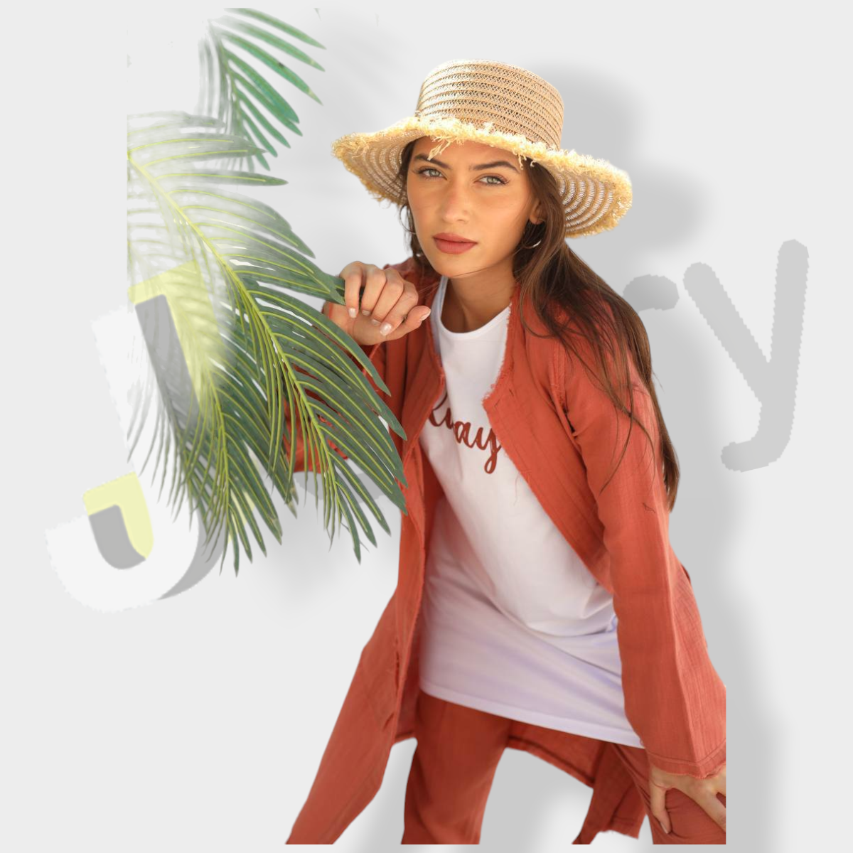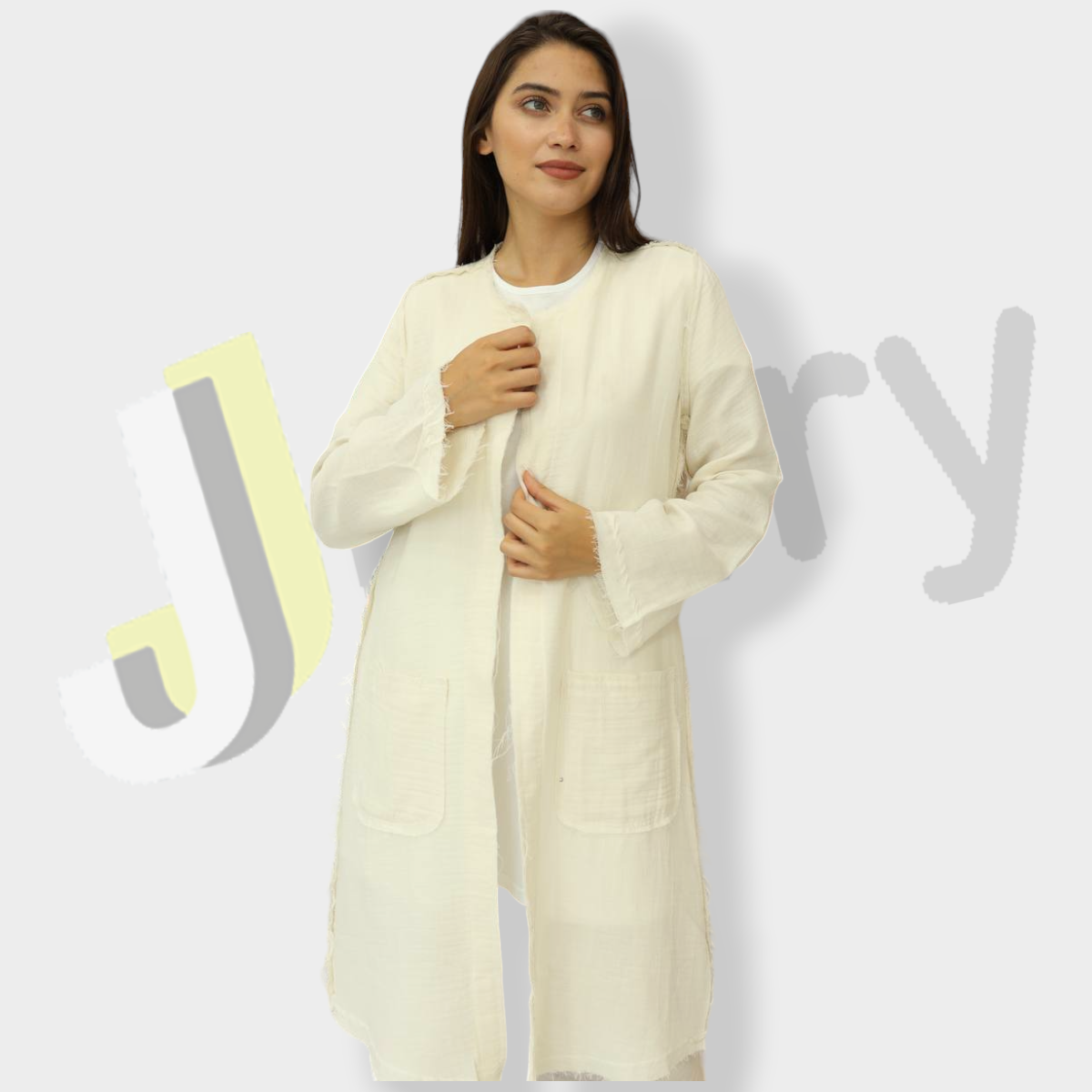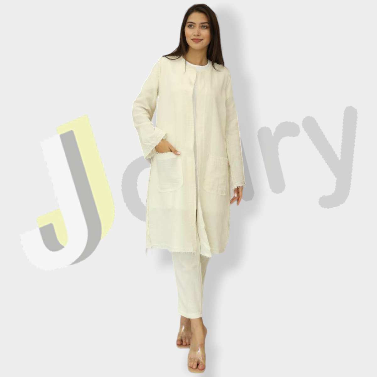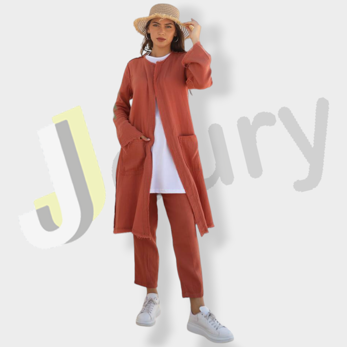 معطف (110 سم) مع جيوب على الجانبين وبلوزة بطباعة نص وبنطال سادة